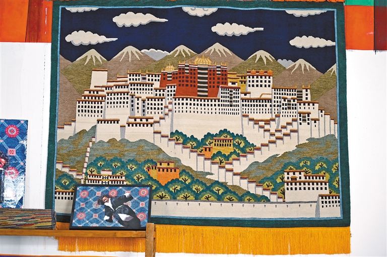 圖為喀瓦堅藏毯廠生產(chǎn)的以“布達拉宮”為題材的藏毯?!∮浾摺≮w越 攝