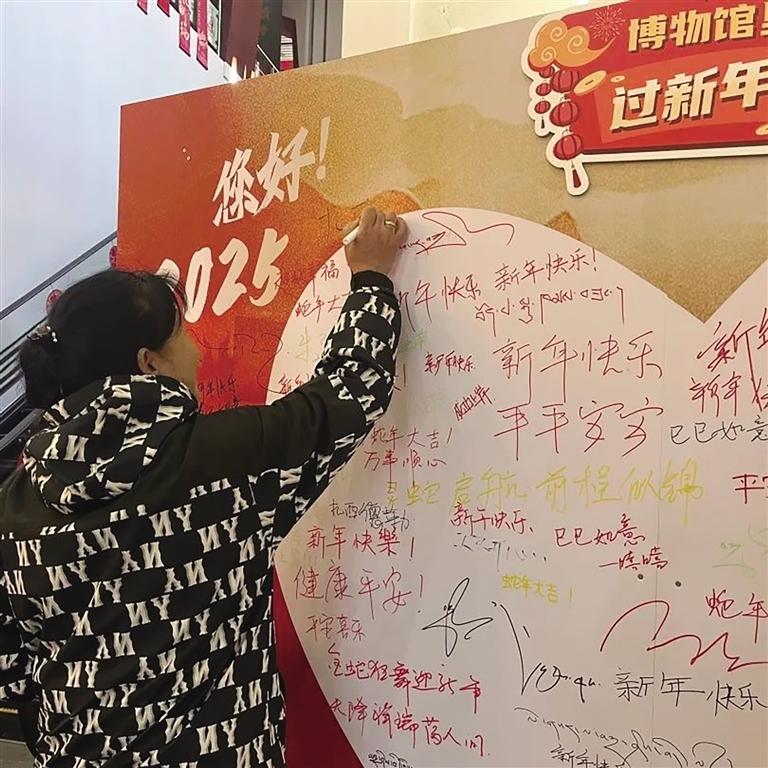 活動期間,博物館大廳的新年愿望墻備受歡迎,成為觀眾們的熱門打卡點。人們紛紛在心愿貼上寫下對新年的美好期許,隨后領(lǐng)取博物館精心準(zhǔn)備的節(jié)日紀(jì)念品。同時,博物館推出的集卡集章活動也吸引了眾多參與者。觀眾們通過參與館內(nèi)各項活動收集紀(jì)念章,就有機會在年末收獲博物館準(zhǔn)備的神秘大獎,這一活動極大地激發(fā)了大家的參與熱情。