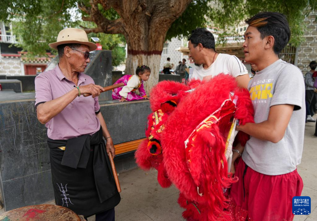 碩督鎮(zhèn)群眾在表演碩督獅子舞(7月21日攝)。新華社記者 晉美多吉 攝
