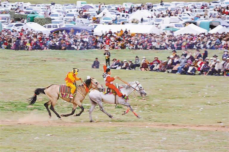 圖為安多縣賽馬競技活動賽馬比賽現(xiàn)場。記者 萬靖 趙書彬 攝