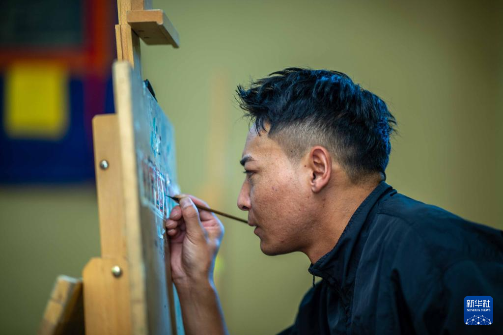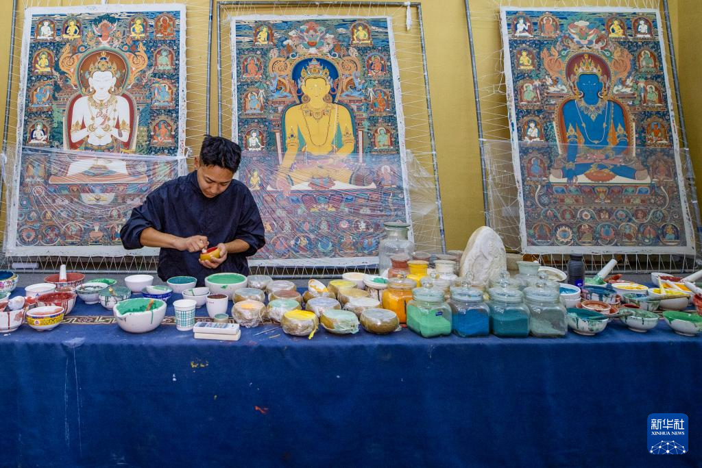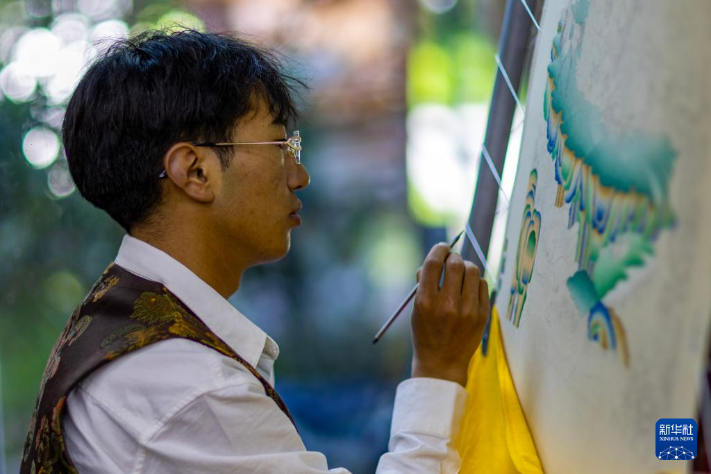 8月6日,一名畫師在繪制唐卡。藏族唐卡(齊吾崗派)入選國家級非物質(zhì)文化遺產(chǎn)代表性項(xiàng)目名錄。新華社記者 旦增尼瑪曲珠 攝 ??