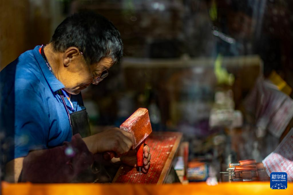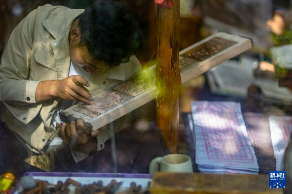 8月6日,雕刻師在工作中。西藏雪巴康雕版印刷制作技藝入選西藏自治區(qū)級非物質(zhì)文化遺產(chǎn)代表性項(xiàng)目名錄。新華社記者 姜帆 攝 ??