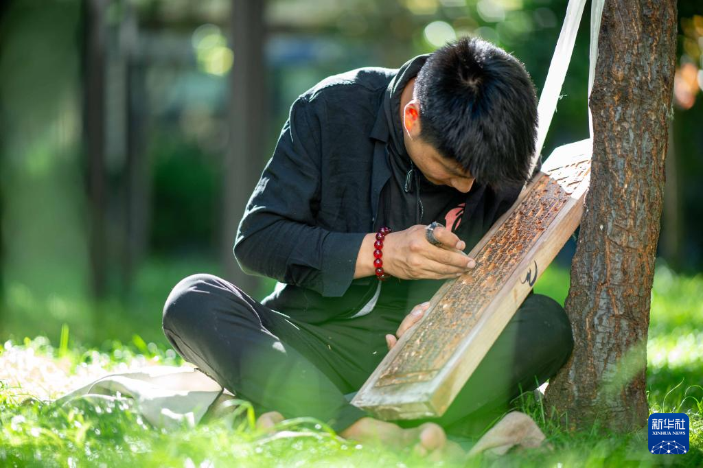 ?8月6日,一名雕刻師在雕刻中。西藏雪巴康雕版印刷制作技藝入選西藏自治區(qū)級非物質(zhì)文化遺產(chǎn)代表性項(xiàng)目名錄。新華社記者 旦增尼瑪曲珠 攝 ??