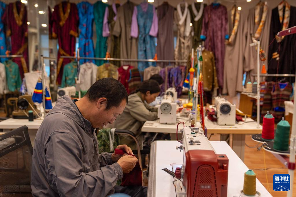 8月6日,服裝師在制作拉薩服飾。拉薩服飾入選西藏自治區(qū)級非物質(zhì)文化遺產(chǎn)代表性項(xiàng)目名錄。新華社記者 旦增尼瑪曲珠 攝 ??