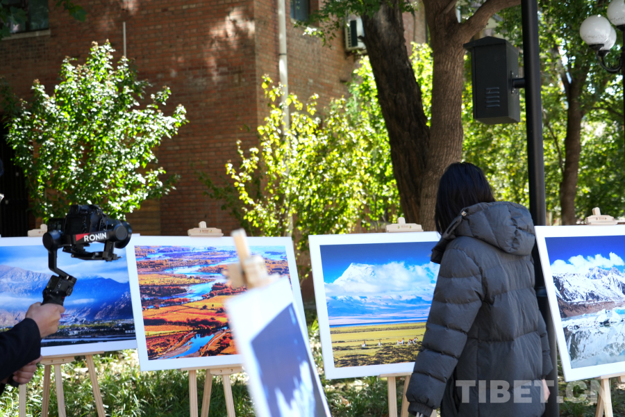 圖為學(xué)生駐足觀(guān)看西藏風(fēng)光、人文等圖片展 攝影:趙佳