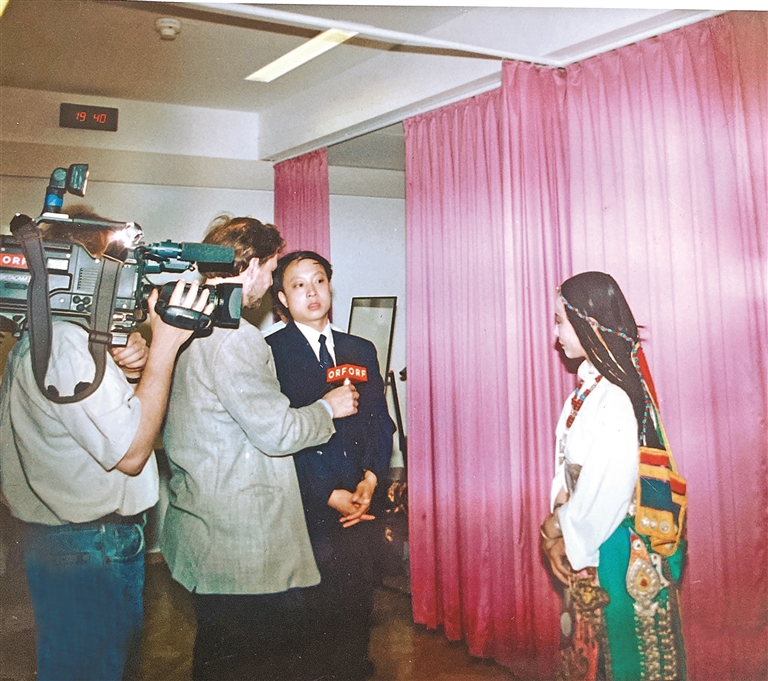向陽花在奧地利演出期間接受奧地利國家電視臺采訪。