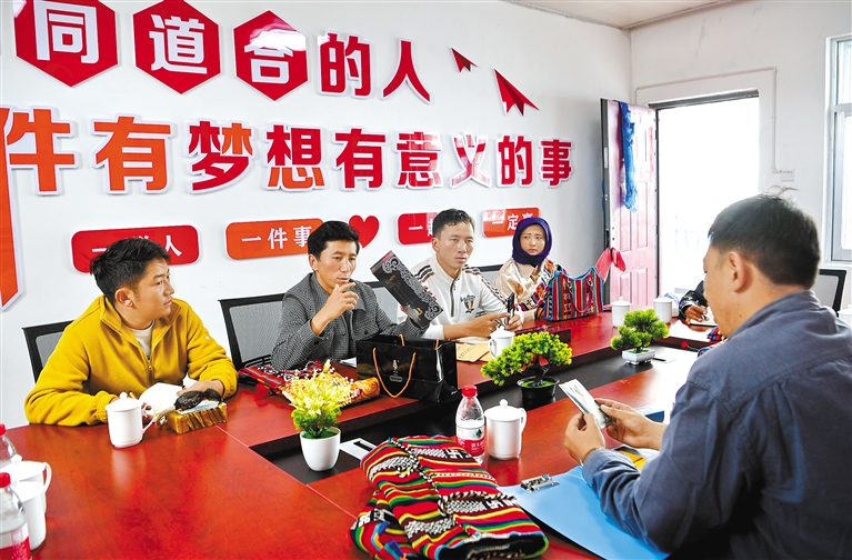 那曲市安多縣的大學(xué)畢業(yè)生倉秋多吉聯(lián)合6人創(chuàng)業(yè),于2021年創(chuàng)辦了安多托尕爾倉游牧產(chǎn)業(yè)有限責(zé)任公司。公司搭建了民族手工藝產(chǎn)品、土特產(chǎn)銷售平臺(tái),在當(dāng)?shù)卣畠?yōu)化營商環(huán)境政策的支持下,創(chuàng)業(yè)團(tuán)隊(duì)逐步擴(kuò)大,帶動(dòng)了當(dāng)?shù)剞r(nóng)牧民產(chǎn)業(yè)興旺?!D為倉秋多吉(左二)和團(tuán)隊(duì)核心成員商討產(chǎn)品銷售提升策略。(資料圖片) 新華社記者 張汝鋒 攝