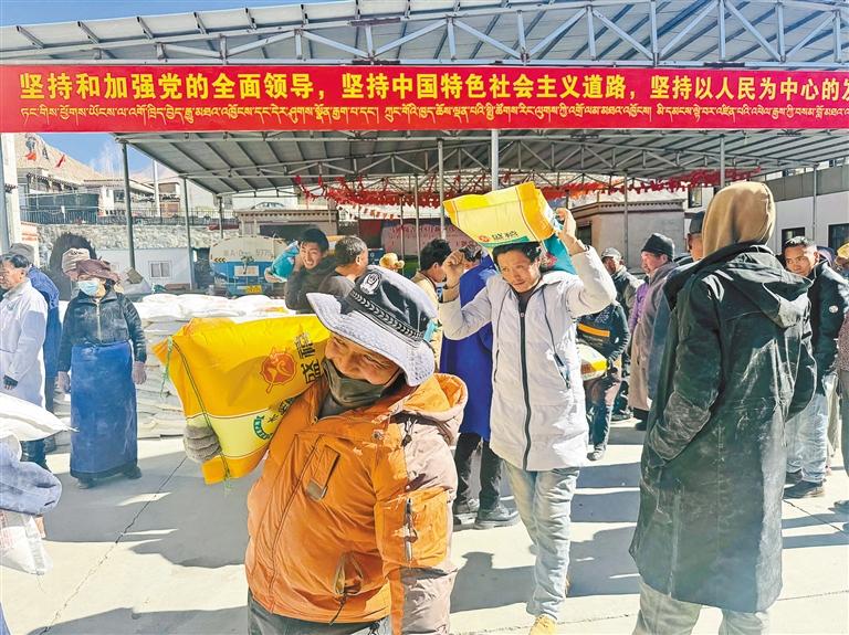 為了讓廣大群眾切實(shí)感受到黨和政府的關(guān)心關(guān)愛,享受到村集體經(jīng)濟(jì)發(fā)展的紅利,近日,拉薩市堆龍德慶區(qū)馬鎮(zhèn)崗吉村舉行2024年度村集體經(jīng)濟(jì)分紅儀式。此次實(shí)物分紅共計發(fā)放115箱奶粉、115箱衛(wèi)生紙、115袋白糖、690袋大米及面粉,脫貧戶再單獨(dú)發(fā)放100元現(xiàn)金,總價值30.335萬元。