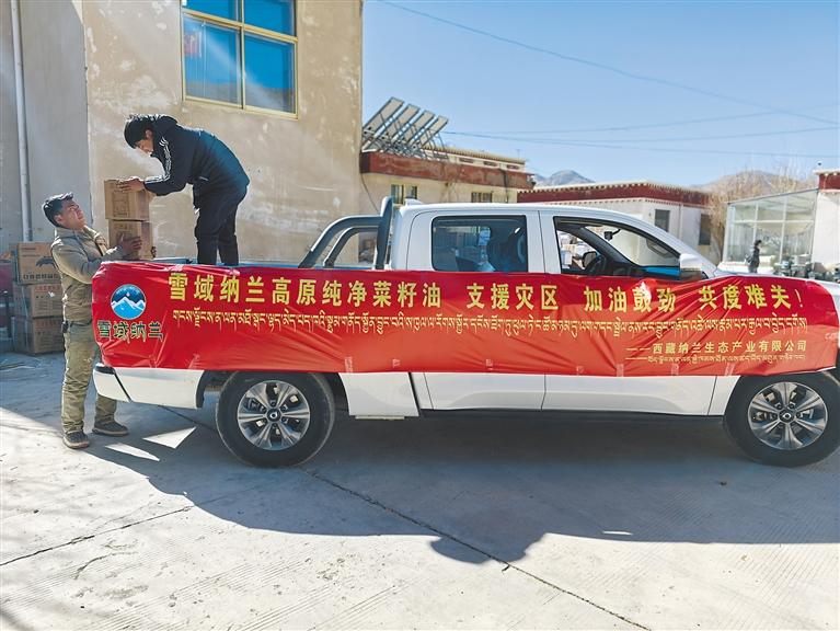 今年1月,西藏納蘭生態(tài)產(chǎn)業(yè)有限公司運送菜籽油支援定日縣地震災(zāi)區(qū)。