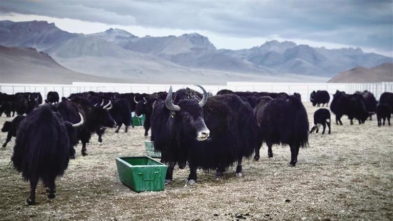 圖為改則縣野血牦牛選育場(chǎng)冬季補(bǔ)飼場(chǎng)景。圖由改則縣野血牦牛選育場(chǎng)提供