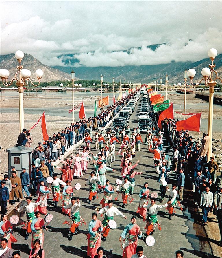 圖為拉薩大橋落成通車(chē)典禮(1965年8月25日攝)。新華社發(fā)