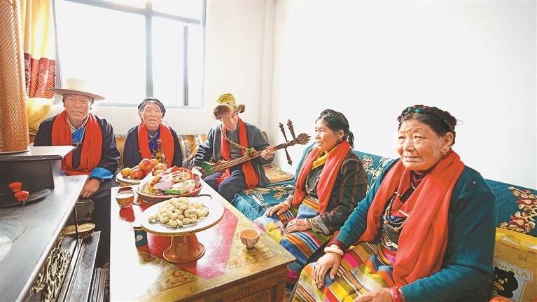 拉孜縣熱薩鄉(xiāng)強(qiáng)公村群眾在新居內(nèi)共度重陽(yáng)佳節(jié)。記者 旦增嘎瓦 攝