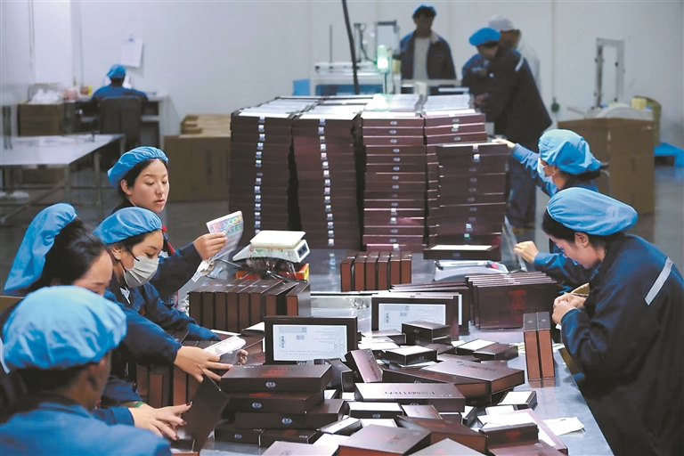 圖為在西藏昌都光宇利民藥業(yè)有限責任公司生產車間里,工人們在包裝藥品。記者 平措朗加 溫凱 攝
