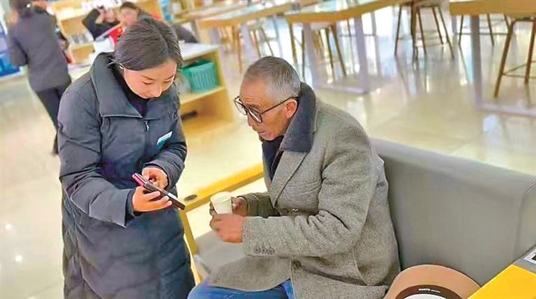 圖為中國移動西藏公司工作人員向客戶介紹如何查詢消費(fèi)賬單。記者 李梅英 攝