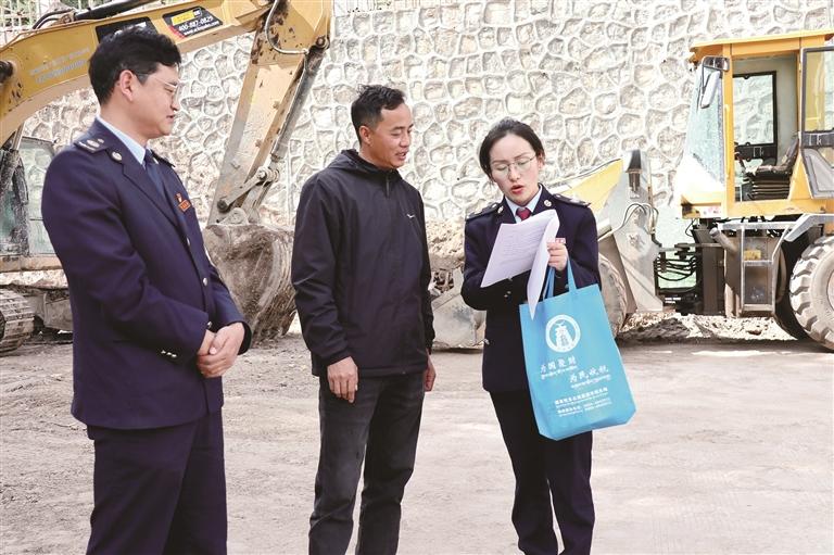 稅務(wù)干部前往企業(yè)經(jīng)營場所進行現(xiàn)場輔導(dǎo)。圖由江達縣稅務(wù)局提供