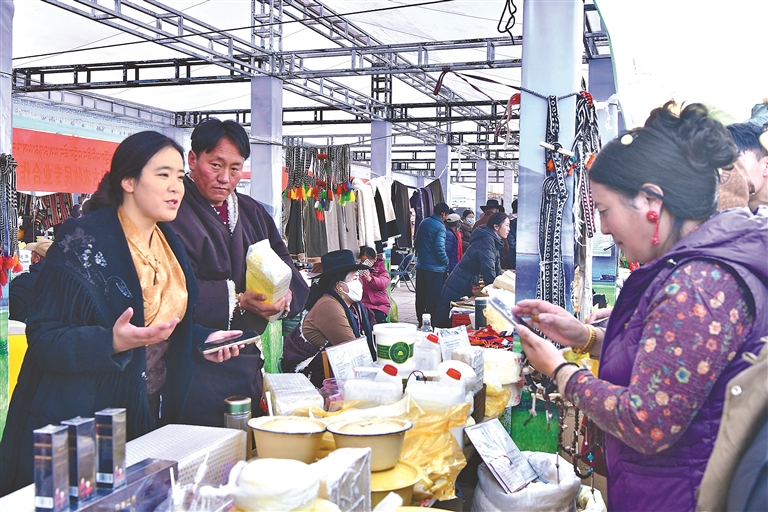 近日,“雪域暖冬 禮遇北城”2025年那曲市中部四縣(區(qū))區(qū)域協(xié)作發(fā)展農(nóng)畜產(chǎn)品展銷會,在拉薩市城關(guān)區(qū)北城新天地廣場舉行。本次展銷會來自那曲市中部四縣(區(qū))的多家企業(yè)和合作社參展,展銷產(chǎn)品包括家畜產(chǎn)品,優(yōu)質(zhì)牛羊肉、新鮮乳制品以及獨(dú)特的地方手工藝品,吸引了眾多市民前來選購。