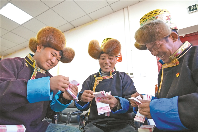 不止青稞酒?!把┛店笈!薄跋滤w麥”成了金字招牌。堆巴村集體經(jīng)濟(jì)收入超百萬(wàn)元,村支書扎西頓珠算起賬:“20個(gè)村都過了15萬(wàn)元,鄉(xiāng)親們的分紅越來(lái)越多?!?/p>