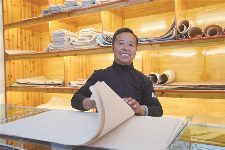 相比之下,即將大學(xué)畢業(yè)的三兒子也讓他滿懷期許?!八麑Σ丶埡芨信d趣,也愿意接手,大學(xué)學(xué)歷能幫他更好地推廣這項技藝?!备裆5┰鲆呀?jīng)開始系統(tǒng)培養(yǎng)兒子,從原料采集到工藝研發(fā),從合作社管理到市場運營,一步步傾囊相授。“新時代的傳承人,不能只懂手藝,還要懂市場、會創(chuàng)新,這樣藏紙才能走得更遠(yuǎn)?!?/p>