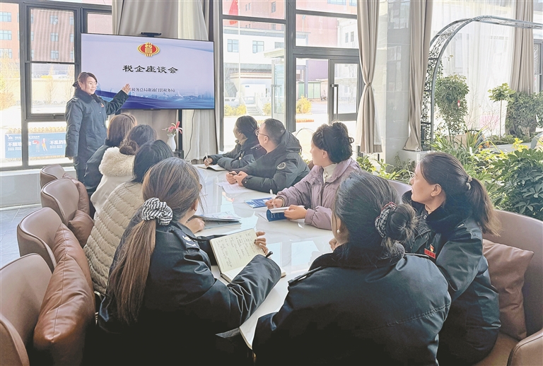 圖為國家稅務(wù)總局謝通門縣稅務(wù)局召開稅企座談會,向企業(yè)問計(jì)問需。記者 袁海霞 攝