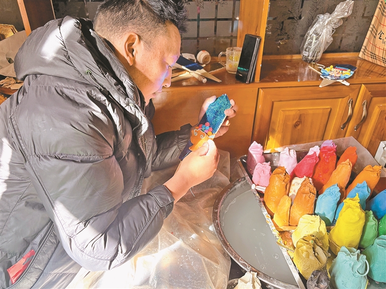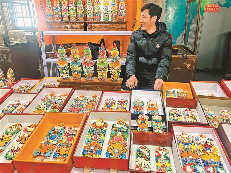 “我從2013年開(kāi)始學(xué)做酥油花,到現(xiàn)在有了不小的長(zhǎng)進(jìn)?!贝稳手钢矍暗乃钟突ㄗ髌方榻B道,這些圖案有的象征家庭和睦、民族團(tuán)結(jié),有的祈愿老人康健、稚童茁壯。“以前沒(méi)學(xué)這門手藝的時(shí)候,只能在家閑著。后來(lái)跟著老師系統(tǒng)學(xué)習(xí)制作酥油花,不光掌握了這門手藝,還能靠它養(yǎng)活自己和家人。”次仁言語(yǔ)間滿是感激,談及未來(lái)更是充滿期待,他表示,等自己技藝精進(jìn)、達(dá)到一定造詣后,也想像老師那樣收徒傳藝,有十足的信心把這門非遺手藝好好傳承下去。