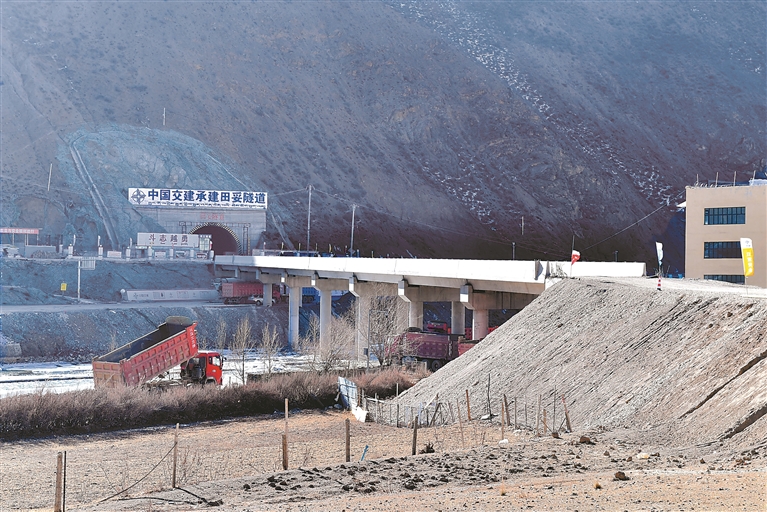 在項(xiàng)目起點(diǎn)田妥隧道口的田妥大橋畔,記者見(jiàn)到了田妥村群眾向巴格列和向巴次登。他倆利用自家的大車(chē)在項(xiàng)目上運(yùn)砂石,從2024年到現(xiàn)在,兩人雙雙增收近10萬(wàn)元。