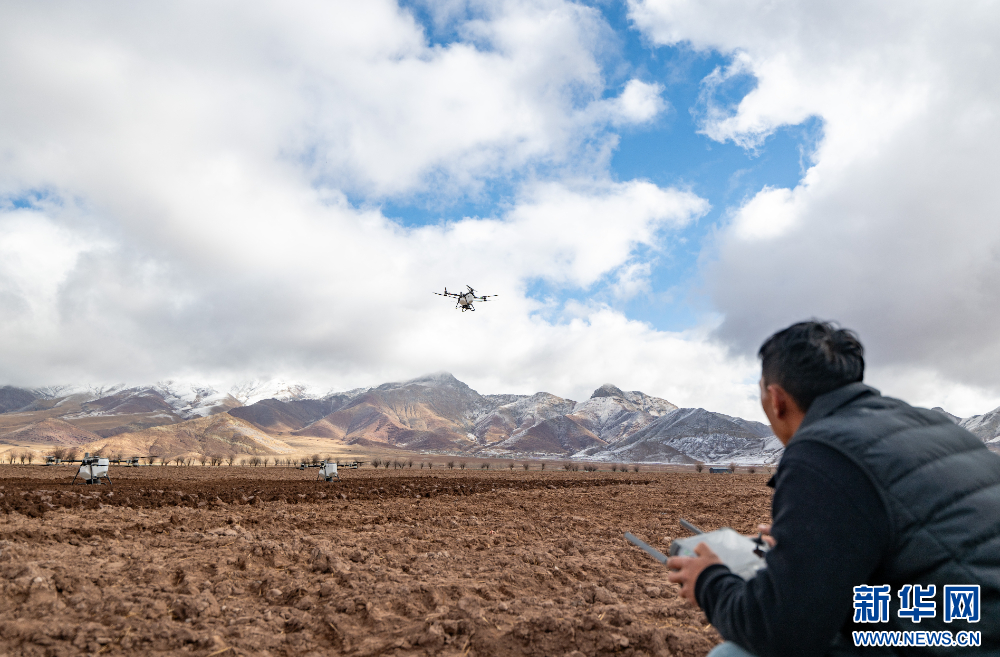 3月16日,西藏拉薩市林周縣春堆鄉(xiāng)春堆村群眾在春耕儀式上操作無人機。新華網(wǎng) 旦增努布 攝