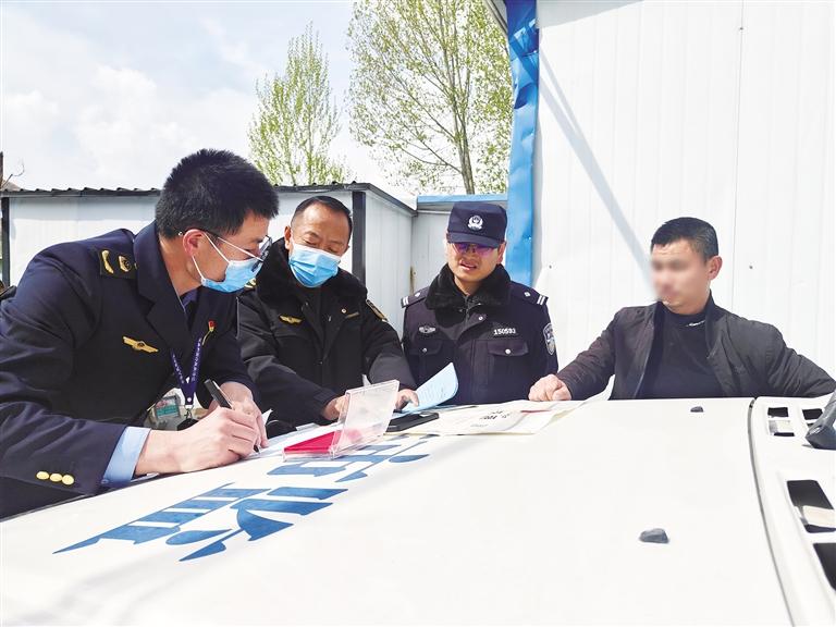 執(zhí)法人員檢查現(xiàn)場(chǎng)。