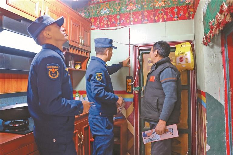 康馬縣消防救援大隊宣傳員深入農(nóng)牧民家中排查火災(zāi)隱患。次仁普赤 攝