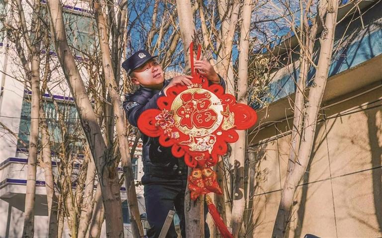 夜幕四合,一天的走訪慰問(wèn)與便民服務(wù)圓滿結(jié)束,派出所營(yíng)區(qū)里迎來(lái)了一場(chǎng)屬于邊關(guān)衛(wèi)士的新春“家宴”?!皝?lái)來(lái)來(lái),搭把手!把中國(guó)結(jié)掛高點(diǎn),更顯喜慶!”教導(dǎo)員楊曦淙踩著凳子懸掛中國(guó)結(jié),新警吳措多杰在一旁穩(wěn)穩(wěn)扶著梯子;另一邊,民警們?nèi)宄扇?,貼春聯(lián)、掛彩燈,將營(yíng)區(qū)裝點(diǎn)得喜氣洋洋、年味十足。