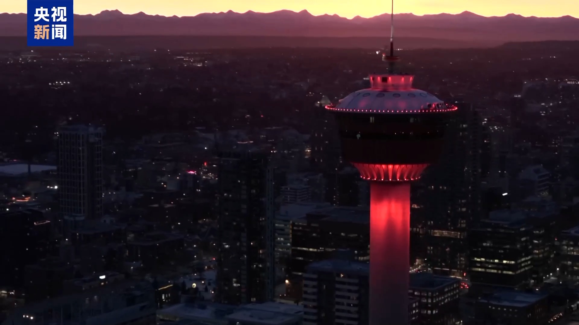 加拿大艾伯塔省卡爾加里市地標建筑——卡爾加里塔,也在除夕和初一點亮“中國紅”。伴隨著夜幕降臨,卡爾加里塔身披紅光,營造出濃濃的節(jié)慶氛圍。