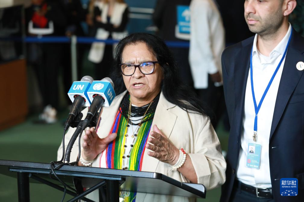 6月3日,在位于紐約的聯(lián)合國總部,剛果(金)外長泰蕾茲·卡伊寬巴·瓦格納在剛果(金)當選聯(lián)合國安理會非常任理事國后講話。新華社記者 謝鍔 攝