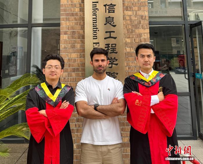 2024年6月,世界智能產(chǎn)業(yè)博覽會期間,穆罕默德·沙拉爾與導(dǎo)師和實(shí)驗(yàn)室同學(xué)一起參與相關(guān)科研成果展陳工作。(天津大學(xué) 供圖)