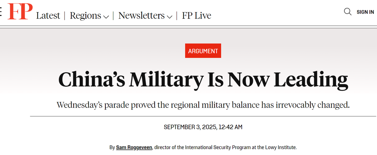 洛伊研究所國際安全項(xiàng)目主任薩姆·羅格維恩在美國《外交政策》網(wǎng)站撰文稱,西方的軍事規(guī)劃人員會(huì)對閱兵式上展出的裝備感到驚訝,已經(jīng)不能再說中國軍隊(duì)在迎頭趕上,或者所謂“抄襲”外國軍事裝備設(shè)計(jì),“中國軍備正在創(chuàng)新,并且處于領(lǐng)先地位”。