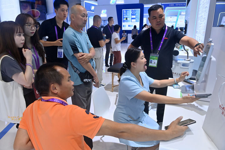 2025年9月19日,在廣西南寧國(guó)際會(huì)展中心,參觀者在體驗(yàn)人工智能看病。新華社記者 陸波岸 攝
