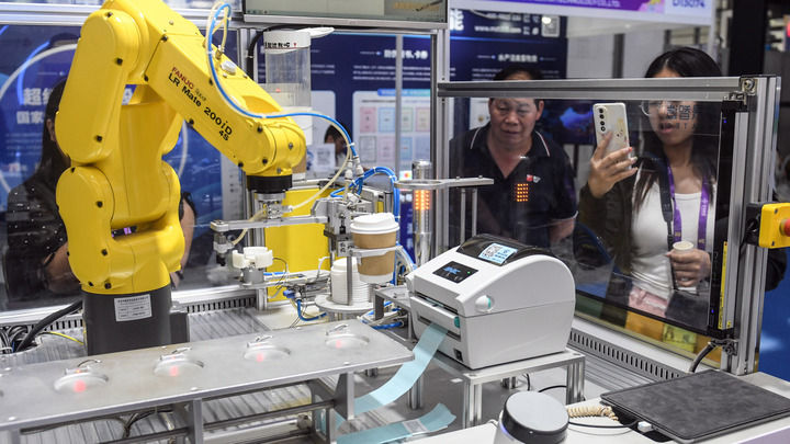 2025年9月19日,在廣西南寧國(guó)際會(huì)展中心,機(jī)器人在制作飲品。新華社記者 張愛林 攝