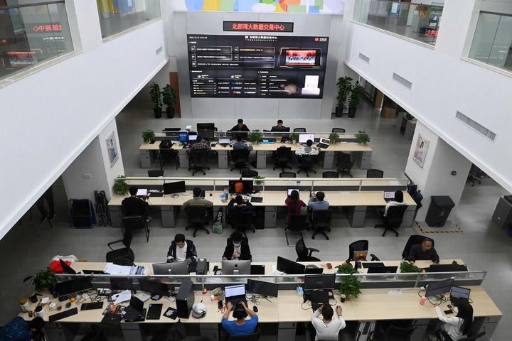 中國(guó)—東盟信息港股份有限公司員工在工作(2023年12月12日攝)。新華社記者 陸波岸 攝