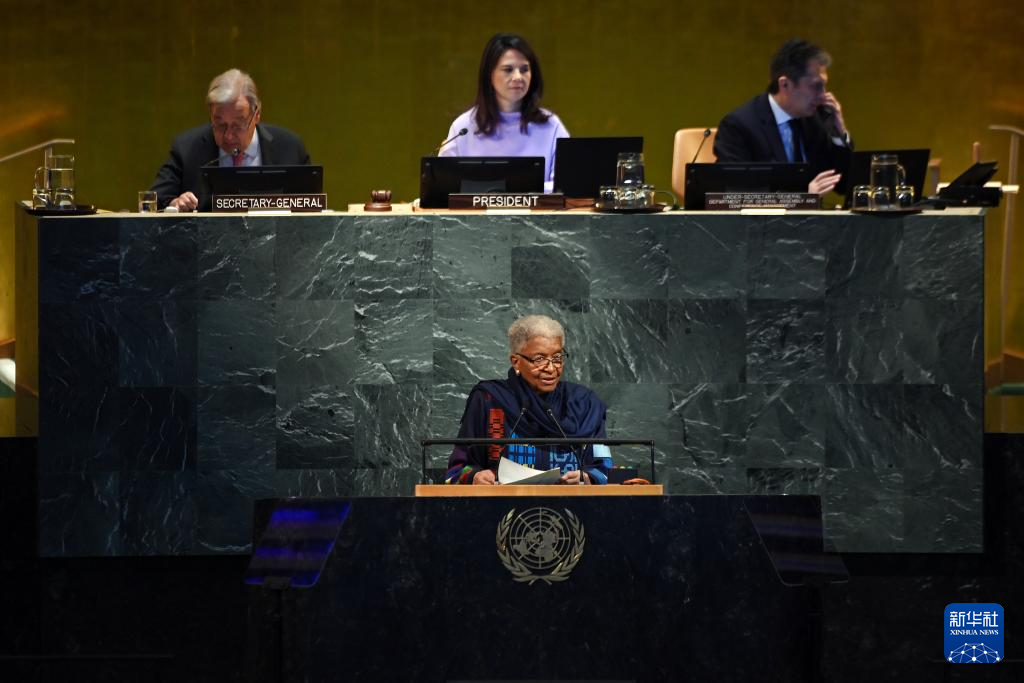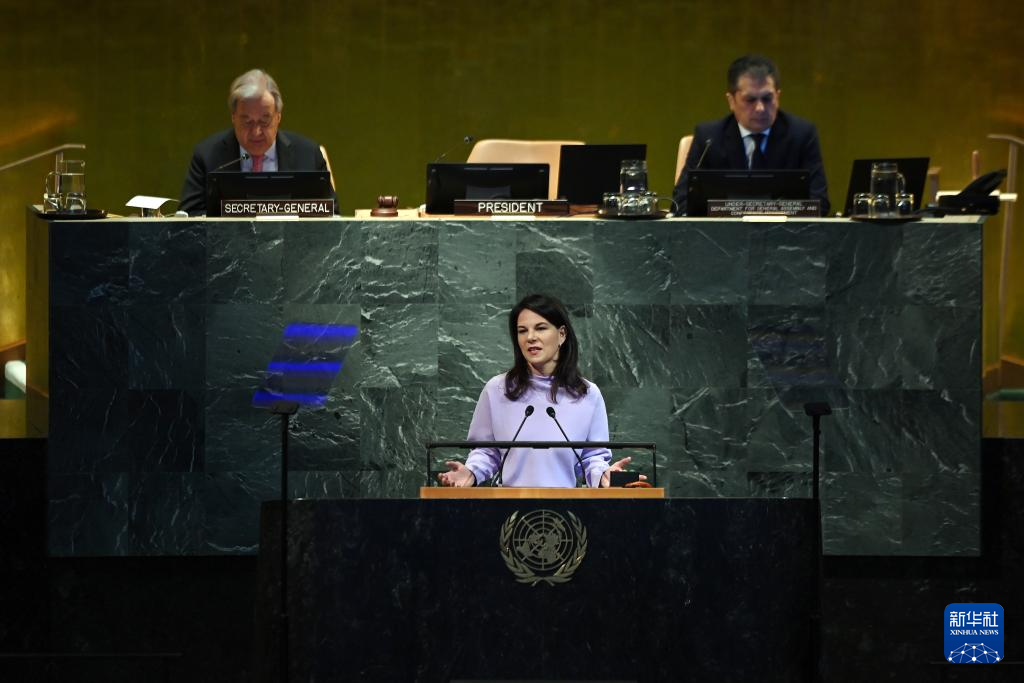 9月22日,在位于紐約的聯(lián)合國(guó)總部,第80屆聯(lián)合國(guó)大會(huì)主席安娜萊娜·貝爾伯克(前)在紀(jì)念聯(lián)合國(guó)成立80周年高級(jí)別會(huì)議上講話。新華社記者 李睿 攝