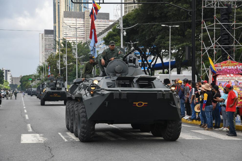 9月23日,在委內(nèi)瑞拉首都加拉加斯,參加游行的裝甲車輛列隊(duì)行進(jìn)。當(dāng)天,加拉加斯舉行大規(guī)模游行,呼吁保衛(wèi)委內(nèi)瑞拉主權(quán)與和平,反對(duì)美國在加勒比海域的軍事威脅。新華社發(fā)(馬科斯·薩爾加多攝)