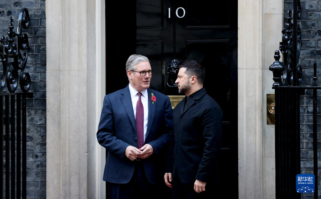 10月24日,在英國倫敦唐寧街10號(hào)首相府前,英國首相斯塔默(左)與到訪的烏克蘭總統(tǒng)澤連斯基交談。新華社記者 李穎 攝