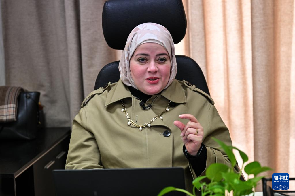 1月19日,在埃及蘇赫奈泉,埃及泰達(dá)特區(qū)開(kāi)發(fā)公司首席執(zhí)行官娜赫拉·伊馬德接受采訪。新華社記者 辛夢(mèng)晨 攝
