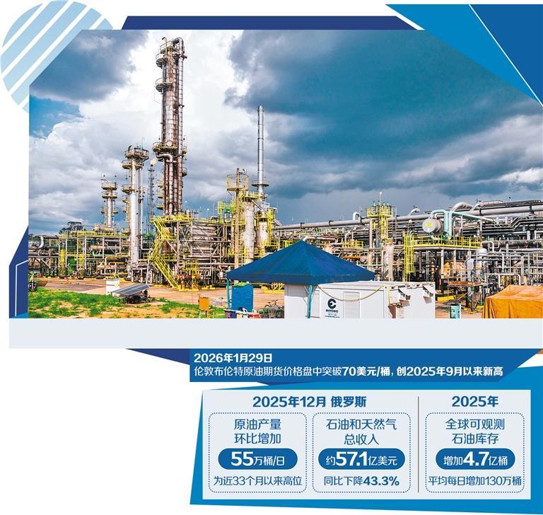 國(guó)際能源署(IEA)近日發(fā)布2026年1月《全球石油市場(chǎng)報(bào)告》顯示,受地緣因素?cái)_動(dòng)、美國(guó)寒潮以及美元指數(shù)走弱等影響,倫敦布倫特原油期貨價(jià)格1月29日盤(pán)中突破70美元/桶關(guān)口,創(chuàng)下2025年9月以來(lái)新高。