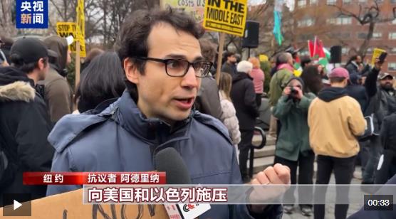 抗議者 阿德里納:我希望所有國家和國際組織向美國和以色列施壓,要求他們停止戰(zhàn)爭。