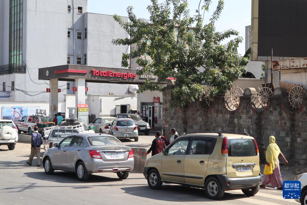 3月17日,在埃塞俄比亞首都亞的斯亞貝巴,車輛在加油站外排隊(duì)等待加油。新華社記者 劉方強(qiáng) 攝