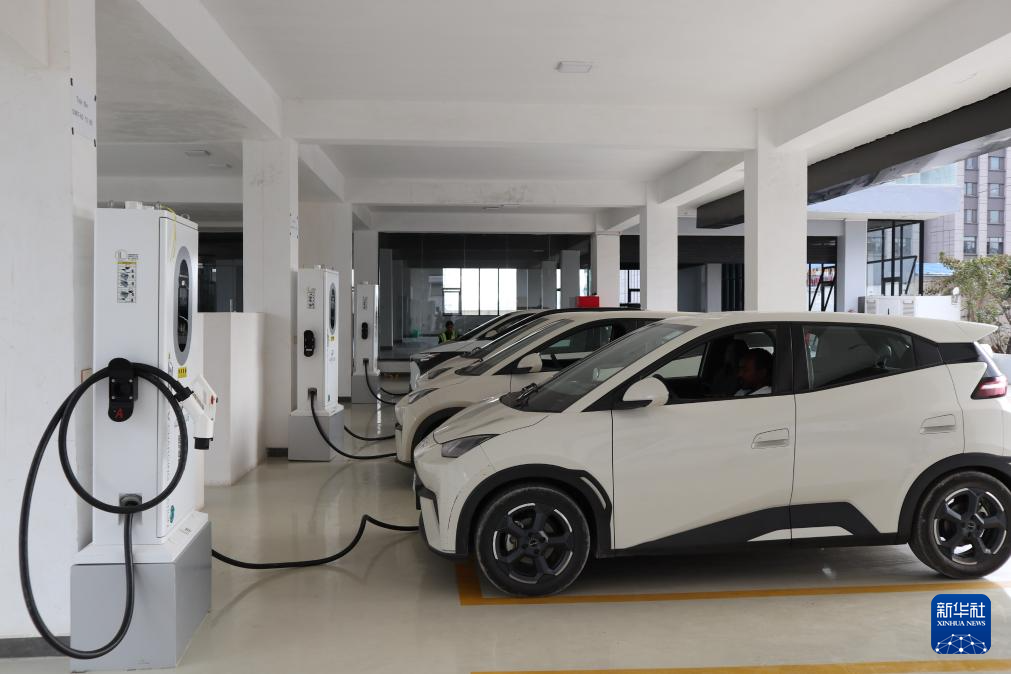 這是3月16日在埃塞俄比亞首都亞的斯亞貝巴拍攝的一處電動(dòng)汽車充電站。新華社記者 劉方強(qiáng) 攝