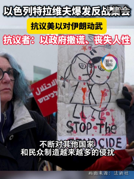 21日,大批民眾在以色列特拉維夫一處廣場集會,抗議美國和以色列對伊朗動武,呼吁美以停止對伊朗的軍事行動??棺h者說,以色列政府欺騙民眾,其行為“喪失人性”,戰(zhàn)爭只會讓無辜民眾喪失性命,希望以和平方式解決問題。