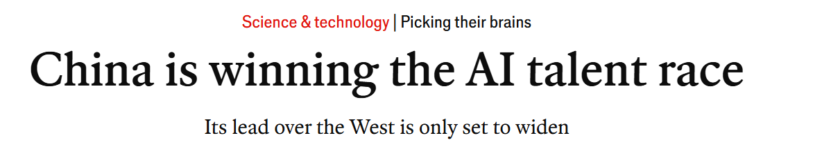 英國《經(jīng)濟學(xué)人》雜志網(wǎng)站近日發(fā)表題為《中國正贏得人工智能人才競賽》的文章。文章認為,中國領(lǐng)先于西方國家的人才優(yōu)勢正在擴大。