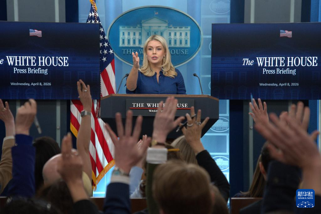4月8日,在美國首都華盛頓白宮,白宮新聞秘書萊維特出席記者會。新華社發(fā)(李源清攝)