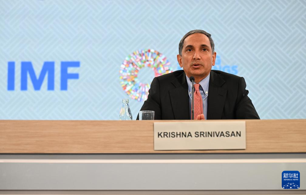 4月16日,在美國華盛頓,國際貨幣基金組織(IMF)亞太部主任斯里尼瓦桑在新聞發(fā)布會上講話。新華社記者 李睿 攝