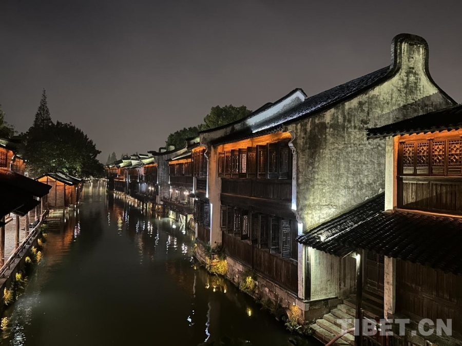 圖為夜晚的烏鎮(zhèn)。古色古香的烏鎮(zhèn)修舊如舊,在今天仍然保持著千年前的風采。攝影:畢然