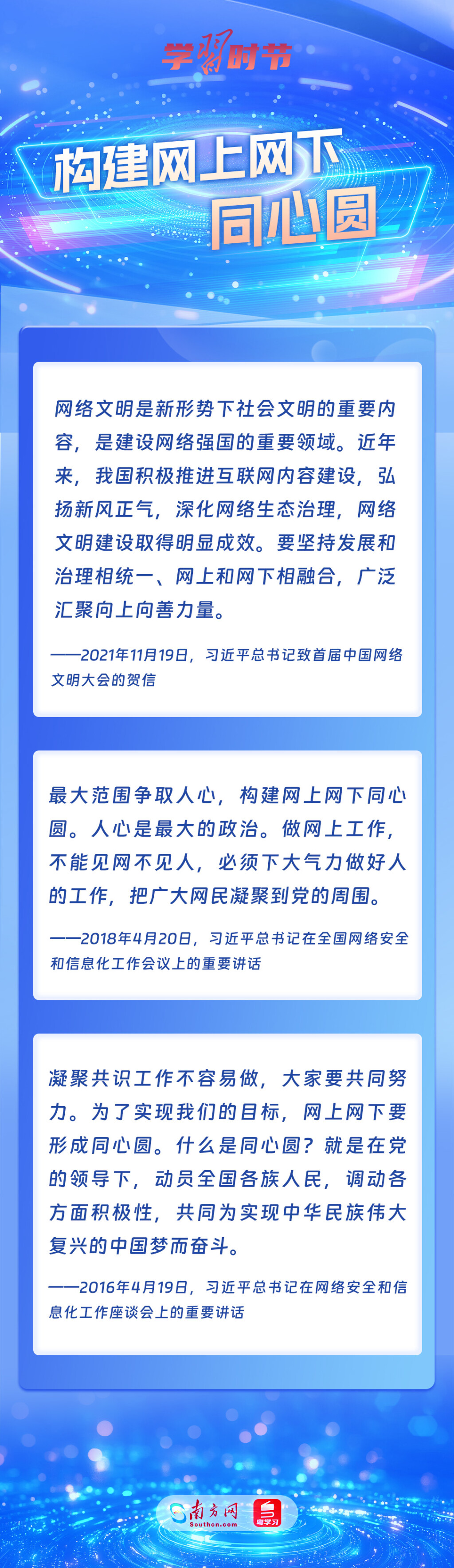 黨的十八大以來(lái),習(xí)近平總書記從信息化發(fā)展大勢(shì)和國(guó)內(nèi)國(guó)際大局出發(fā),就網(wǎng)絡(luò)安全和信息化工作提出一系列具有開創(chuàng)性意義的新理念新思想新戰(zhàn)略,形成了習(xí)近平總書記關(guān)于網(wǎng)絡(luò)強(qiáng)國(guó)的重要思想。其中,有不少生動(dòng)形象的表述,深入人心,發(fā)人深省,讓我們一起學(xué)習(xí)。